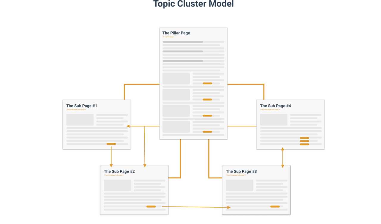 Her küme, belirli bir konuya dair genel bir bakış sağlayan ana sayfa olan bir sütun sayfası (pillar page) içerir. İlişkili alt konuları kapsayan birden fazla alt sayfa (küme sayfaları olarak da adlandırılır). Bu sayfalar ise iç bağlantı dediğimiz internal linkler ile birbirine bağlıdır.